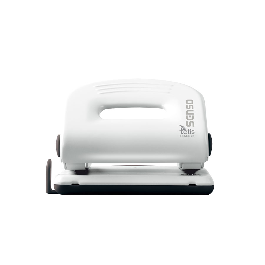 Dziurkacz jest wyposażony w plastikowy pojemnik na konfetti, który ułatwia utrzymanie porządku na biurku. Posiada także praktyczną listwę formatową, która umożliwia precyzyjne dziurkowanie dokumentów w formatach A4, US, A5, A6 oraz 888. Boczne elementy dekoracyjne dodają estetyki, dzięki czemu dziurkacz prezentuje się elegancko w każdym biurze.