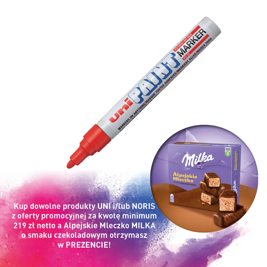 jm.: Kup dowolne produkty UNI i/lub NORIS z oferty promocyjnej za kwotę minimum 219 zł netto a Alpejskie Mleczko MILKA o smaku czekoladowym otrzymasz w PREZENCIE!