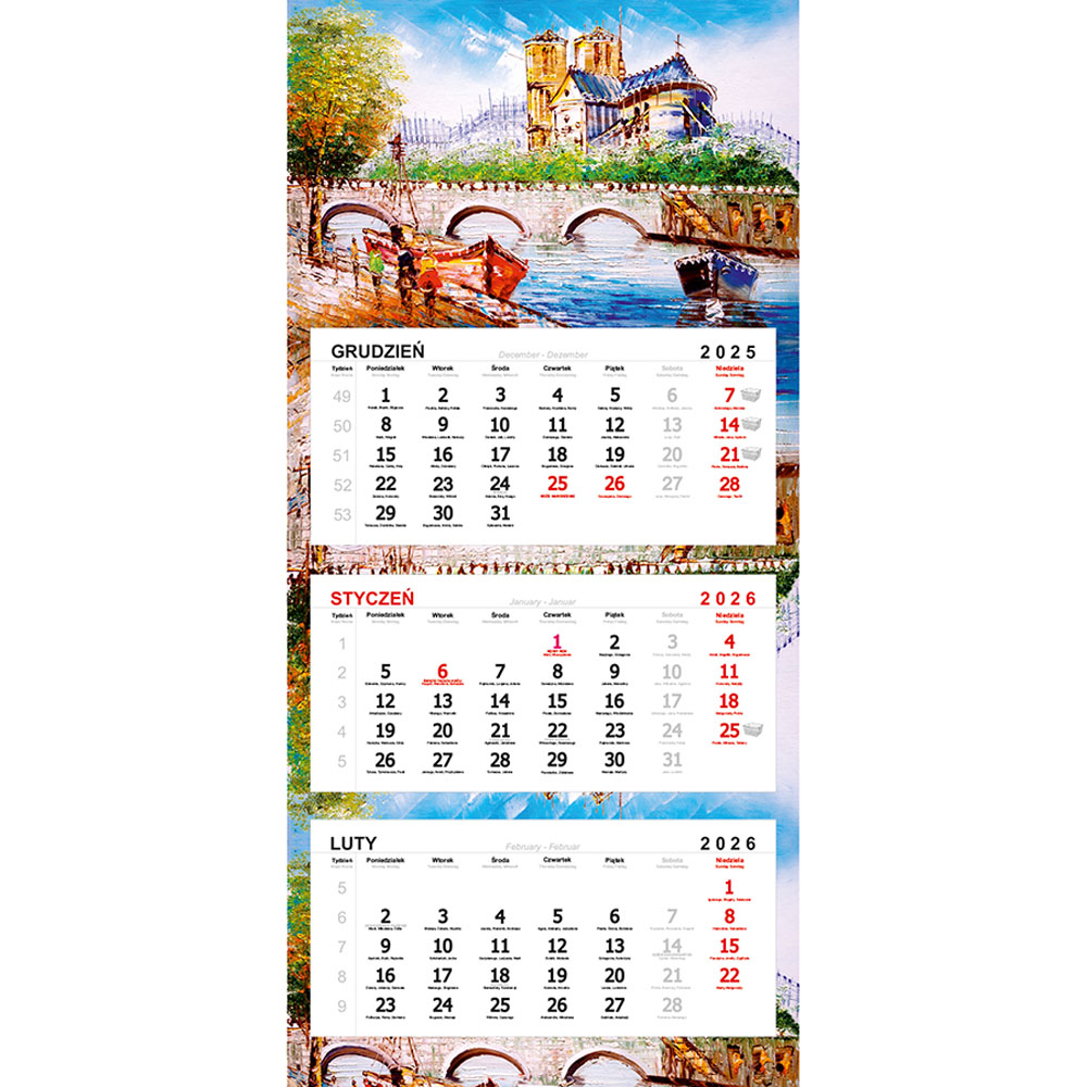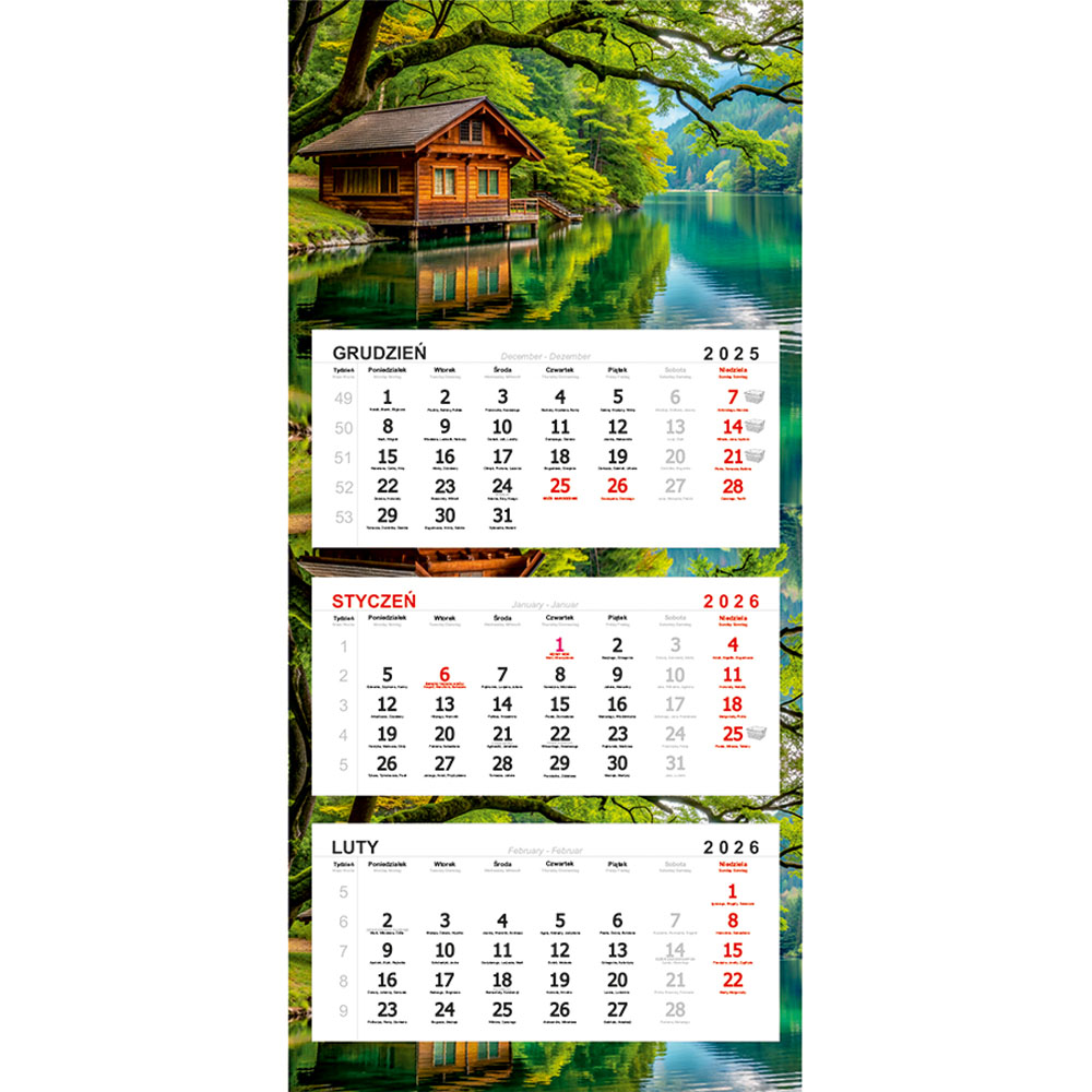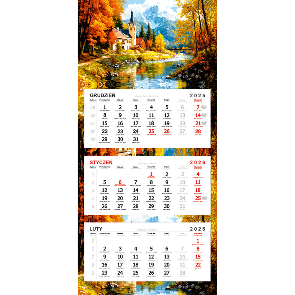 - 3-języczne kalendarium (zaznaczone święta państwowe i kościelne)