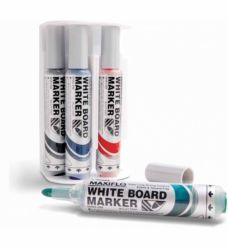Marker do tablic suchościeralnych Pentel MW85 wyposażony jest w okrągłą końcówkę, która zapewnia precyzyjne i płynne pisanie. Idealny do prezentacji, notatek i rysunków na tablicach suchościeralnych.