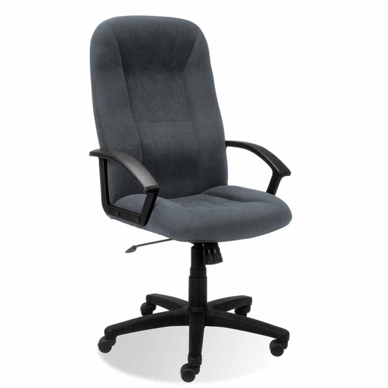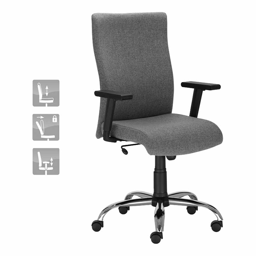 obrotowy fotel biurowy z wygodnym oparciem i zagłówkiem miękkie, wypełnione pianką siedzisko mechanizm motylkowy (TILT) dający możliwość swobodnego kołysania oraz blokady pozycji do pracy zagłówek stały o rozmiarze 26,5 x 17,5 cm stałe podparcie lędźwiowego odcinka kręgosłupa podłokietniki plastikowe zapewniająca stabilność pięcioramienna, stalowa, chromowana podstawa podnośnik gazowy (siłownik): 100 mm, chromowany kółka nylonowe, twarde, do wszystkich typów podłóg - średnica 50 mm materiał: ekoskóra wysokość krzesła: 117- 127 cm regulacja wysokości siedziska w zakresie: 47 – 57 cm szerokość oparcia: 51 cm wysokość oparcia: 76 cm szerokość siedziska: 51 cm głębokość siedziska: 46 cm średnica podstawy: 68 cm maksymalne obciążenie: 100 kg rekomendowany czas siedzenia: do 8 godzin dziennie gwarancja: 2 lata kolor: czarny