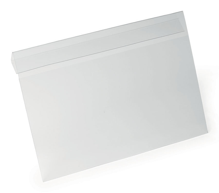 - kieszeń magazynowa wykonana z przezroczystej twardej folii PET z zakładką do zawieszenia na kartonach, pudełkach lub innych pojemnikach