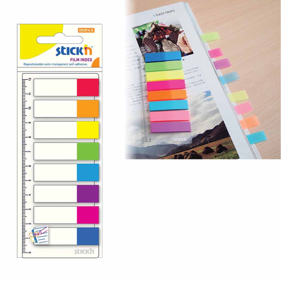 zakładki indeksujące, idealne do skutecznego i szybkiego zaznaczania stron ilość zakładek: 4x40 w rozmiarze 20x50mm wykonane z folii PP o grubości 60μm klej usuwalny za pomocą wody samoprzylepne wielorazowego użytku można po nich pisać kolor: mix kolorów (neon)