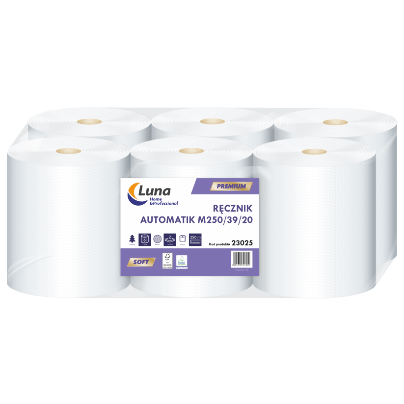 Ręczniki LUNA 150 wykonane w 100% z celulozy cechują się wysoką chłonnością i wytrzymałością, dzięki czemu sprawdzą się zarówno w biurach, placówkach medycznych, jak i gastronomii. Każda rolka ma 150 metrów długości, a zestaw 6 rolek zapewnia długotrwałe użytkowanie i wygodne uzupełnianie dozowników w miejscach o dużym natężeniu ruchu.