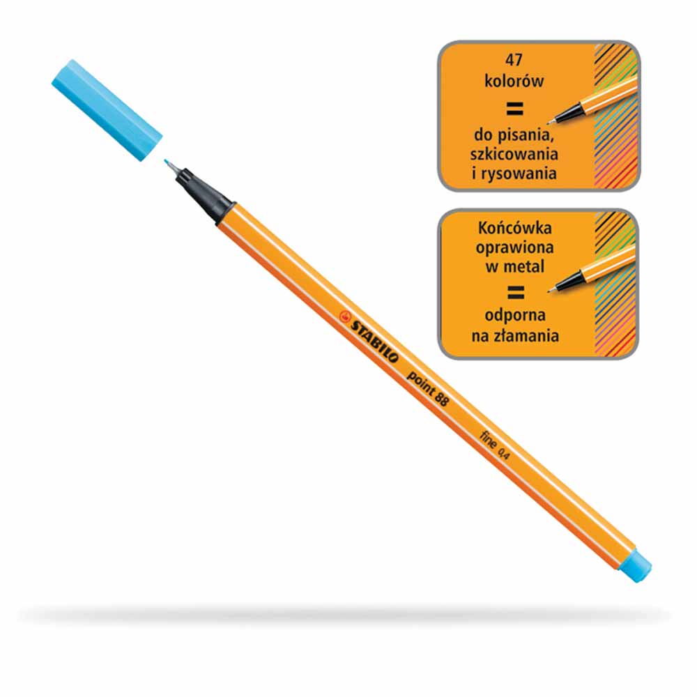 Dzięki fibrowej końcówce w metalowej oprawie, cienkopis doskonale sprawdza się przy rysowaniu, podkreślaniu i pracy z linijką czy szablonem. Wysokiej jakości tusz na bazie wody gwarantuje płynne pisanie i nie wysycha nawet przez 3 dni przy zdjętej skuwce (technologia cap-off).