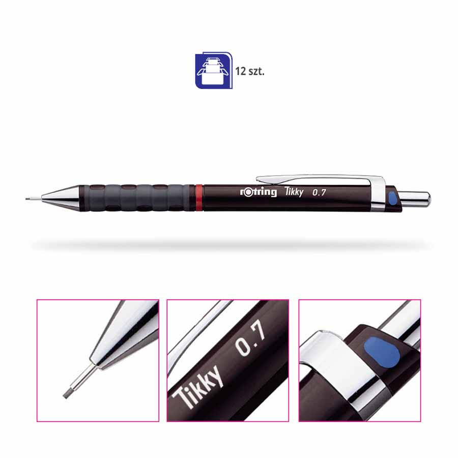 Metalowy klips umożliwia łatwe przypięcie ołówka do notesu, kieszeni czy teczki. Jest to praktyczne rozwiązanie, które pozwala mieć ołówek zawsze przy sobie, gotowy do użycia w każdej chwili.
