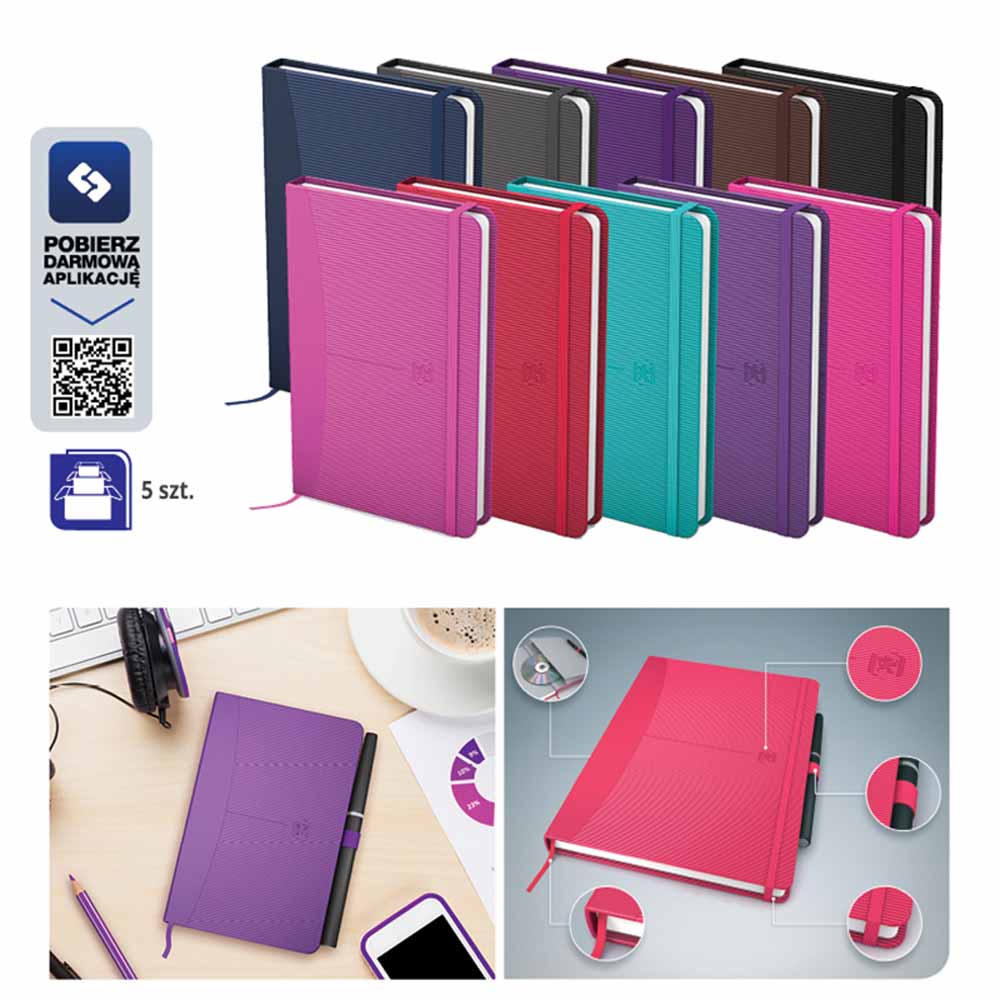 - kartonowa okładka na końcu notatnika umożliwia notowanie w każdych warunkach oraz do ostatniej strony