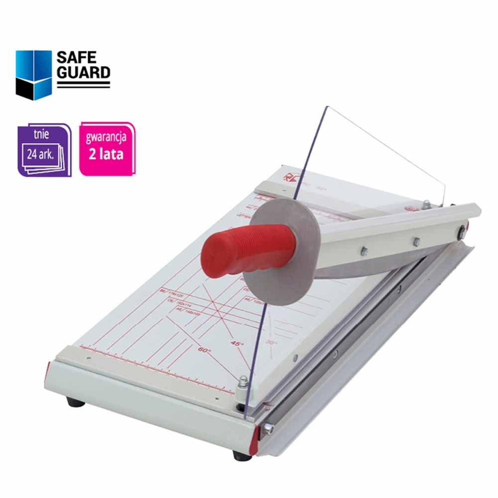 Gilotyna Wallner GT 320 wyposażona jest w ręczny docisk papieru oraz osłonę zabezpieczającą, które gwarantują bezpieczną i dokładną pracę. Umożliwia jednorazowe cięcie do 10 kartek 80g na długości 320 mm, co zapewnia precyzyjne wykończenie dokumentów.