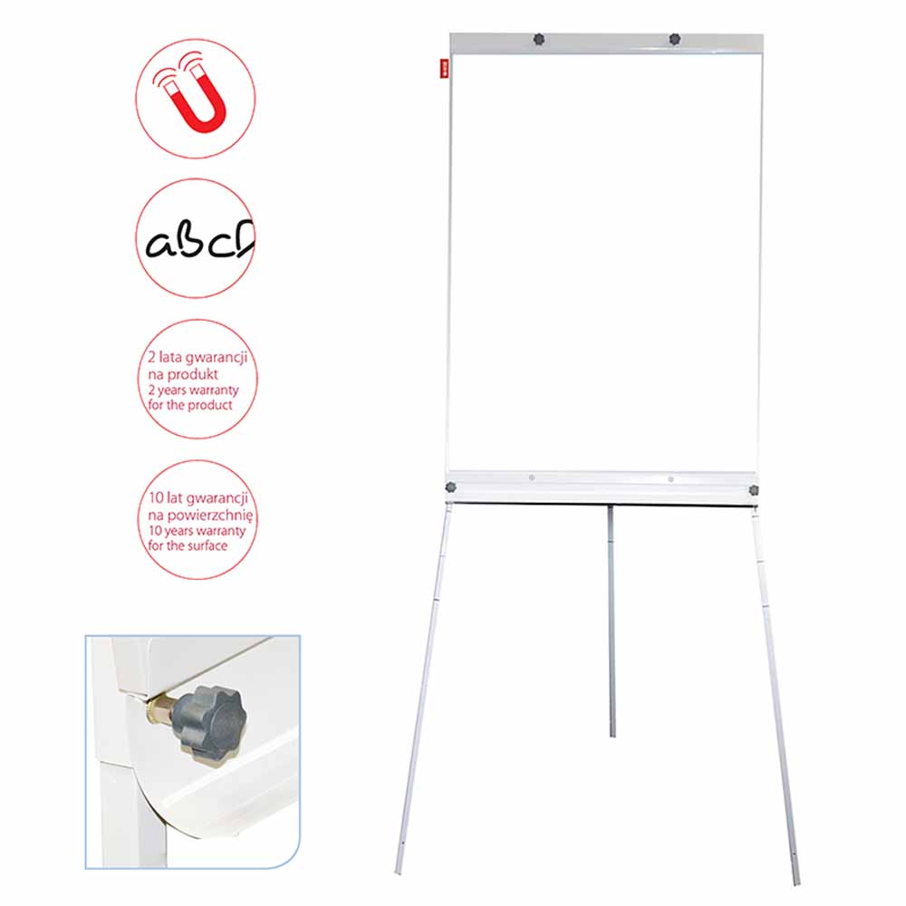 Flipchart BI-OFFICE został zaprojektowany z myślą o stabilności i mobilności. Jego lekka konstrukcja z trójnogiem zapewnia stabilne podparcie, jednocześnie umożliwiając łatwe przestawianie tablicy w dowolne miejsce. To idealne rozwiązanie do biur, sal konferencyjnych i innych miejsc, gdzie liczy się elastyczność.