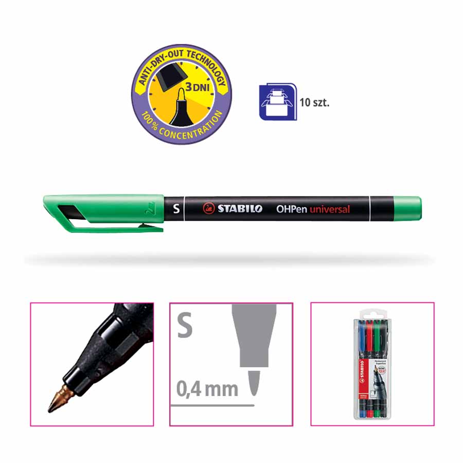 Foliopis STABILO OHPen S jest niezwykle wszechstronny, idealny do pisania na szkle, torebkach foliowych, etykietach, zdjęciach, błyszczącym papierze, płytach CD oraz zdjęciach rentgenowskich. Jego uniwersalność sprawia, że jest niezastąpiony w wielu sytuacjach.
