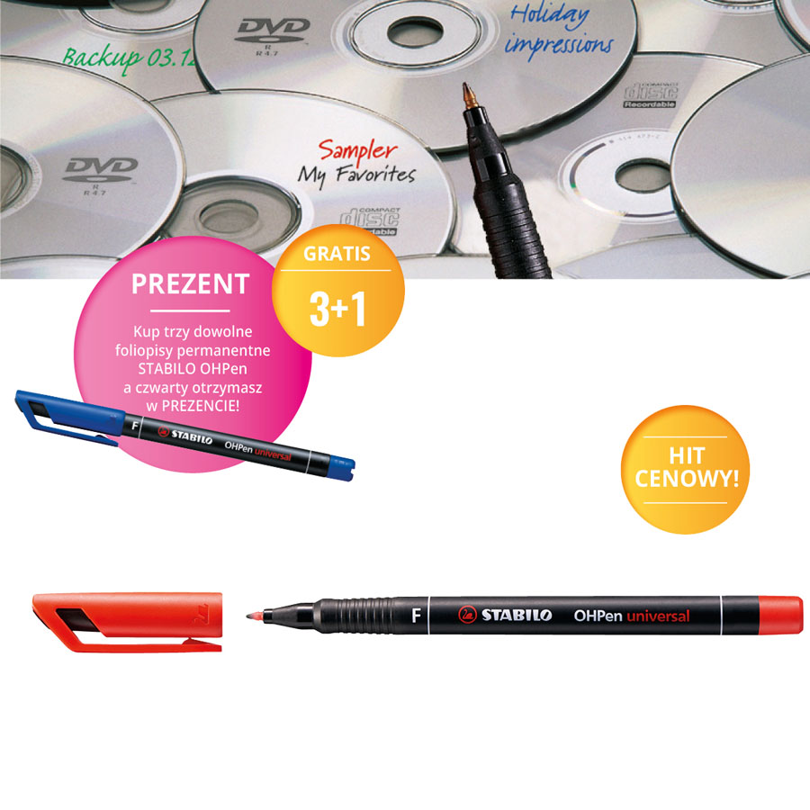 jm.: kup trzy dowolne foliopisy permanentne STABILO OHPen a czwarty otrzymasz w PREZENCIE!