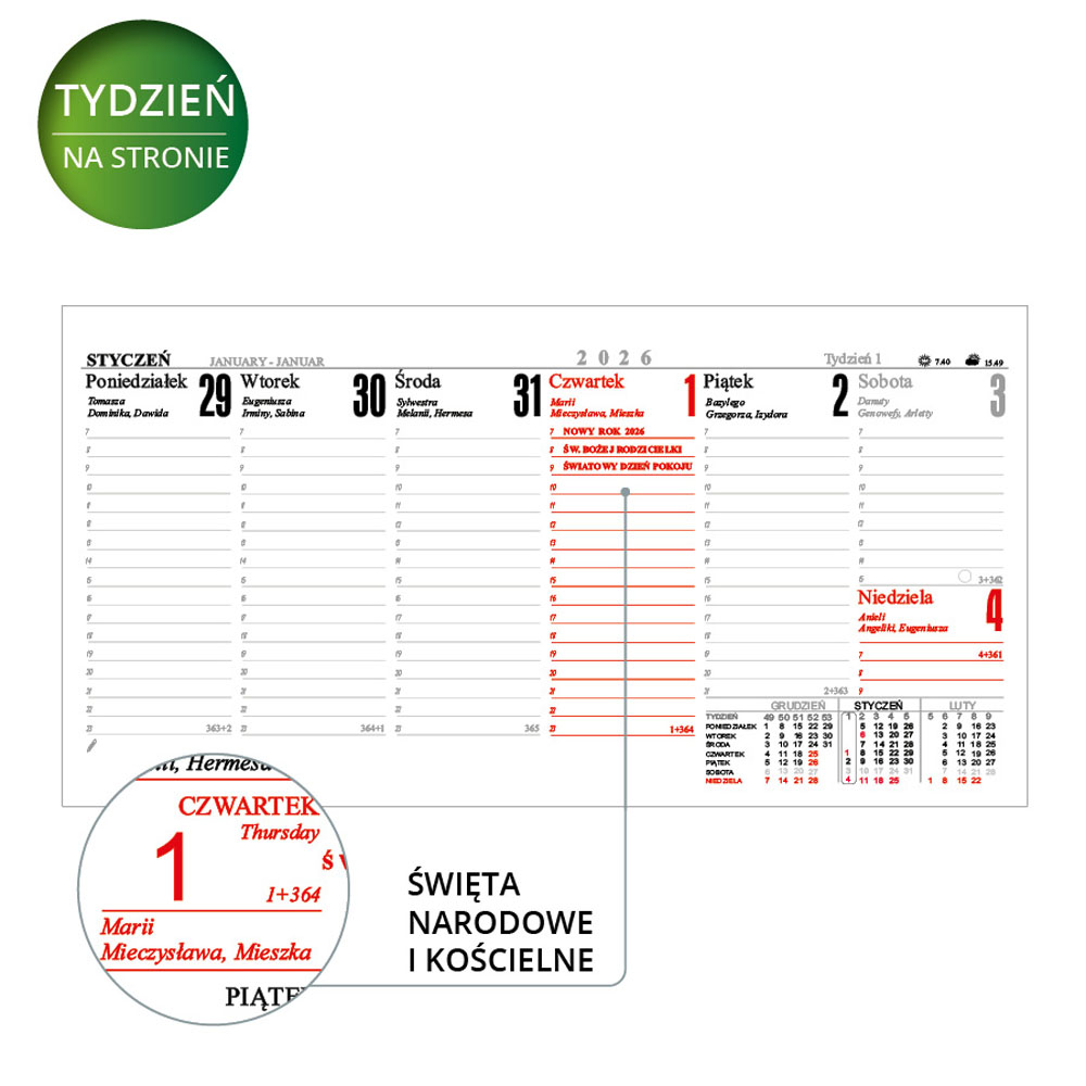 Kalendarz biurkowy poziomy DC