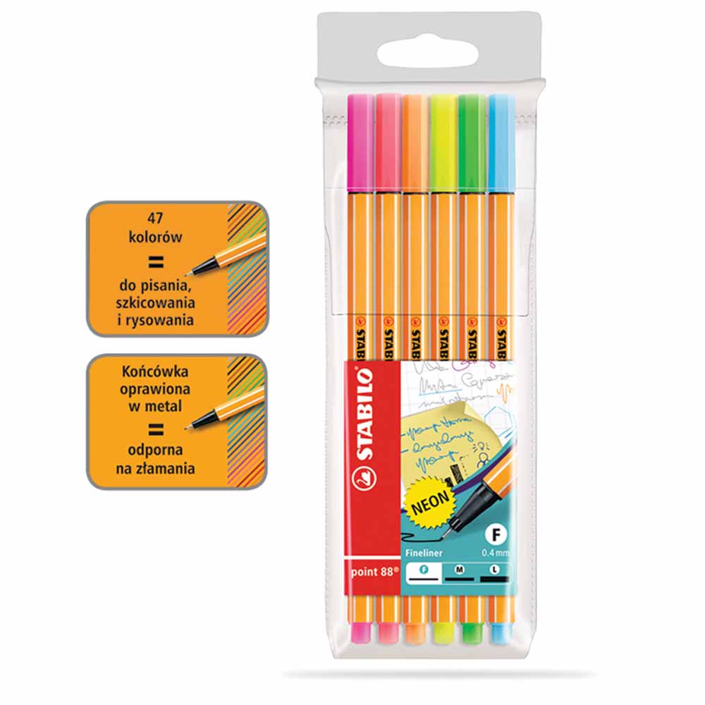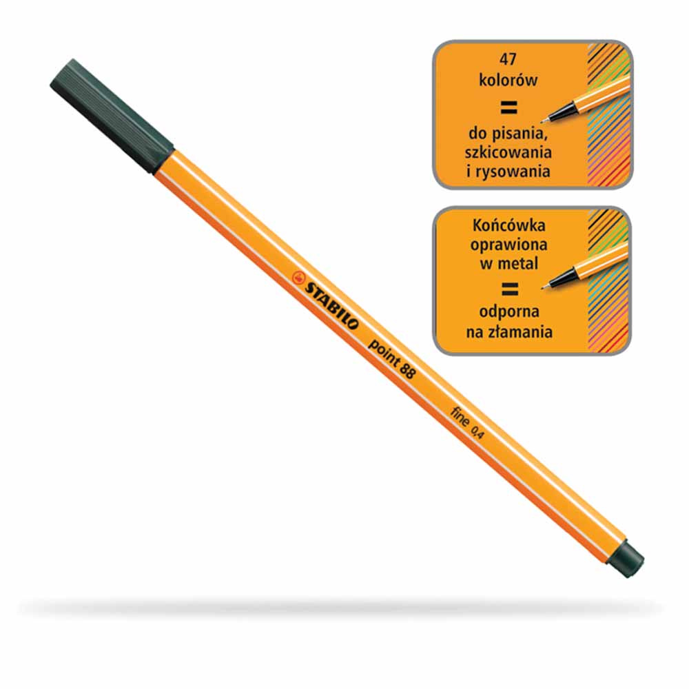 Elementy obudowy cienkopisu są w kolorze tuszu, co ułatwia jego identyfikację. Tusz na bazie wody jest bezpieczny i ekologiczny, zapewniając jednocześnie intensywne i trwałe kolory.