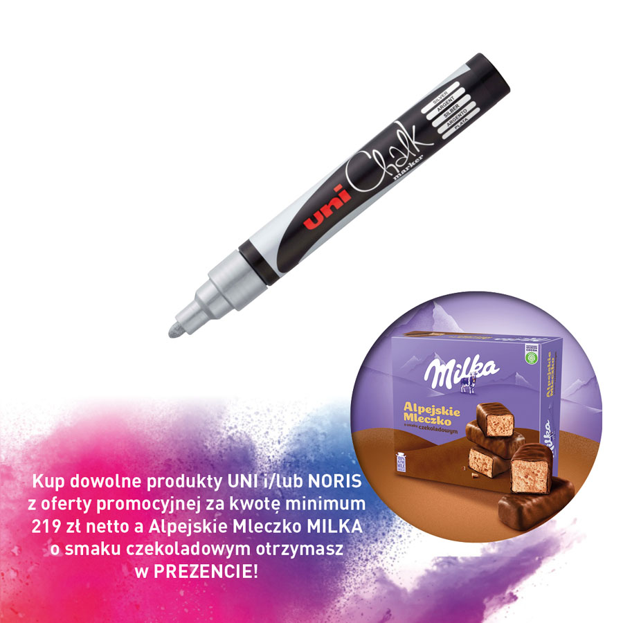 jm.: Kup dowolne produkty UNI i/lub NORIS z oferty promocyjnej za kwotę minimum 219 zł netto a Alpejskie Mleczko MILKA o smaku czekoladowym otrzymasz w PREZENCIE!