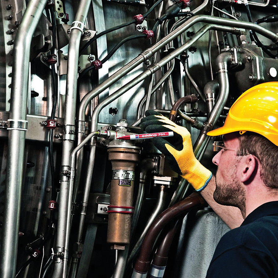 - trwały tusz o słabym zapachu i kryciu zbliżonym do lakieru jest wysoce odporny na ścieranie, działanie światła i temperatury (widoczny do 400 stopni C, kolory biały i żółty - nawet do 1000 stopni C)