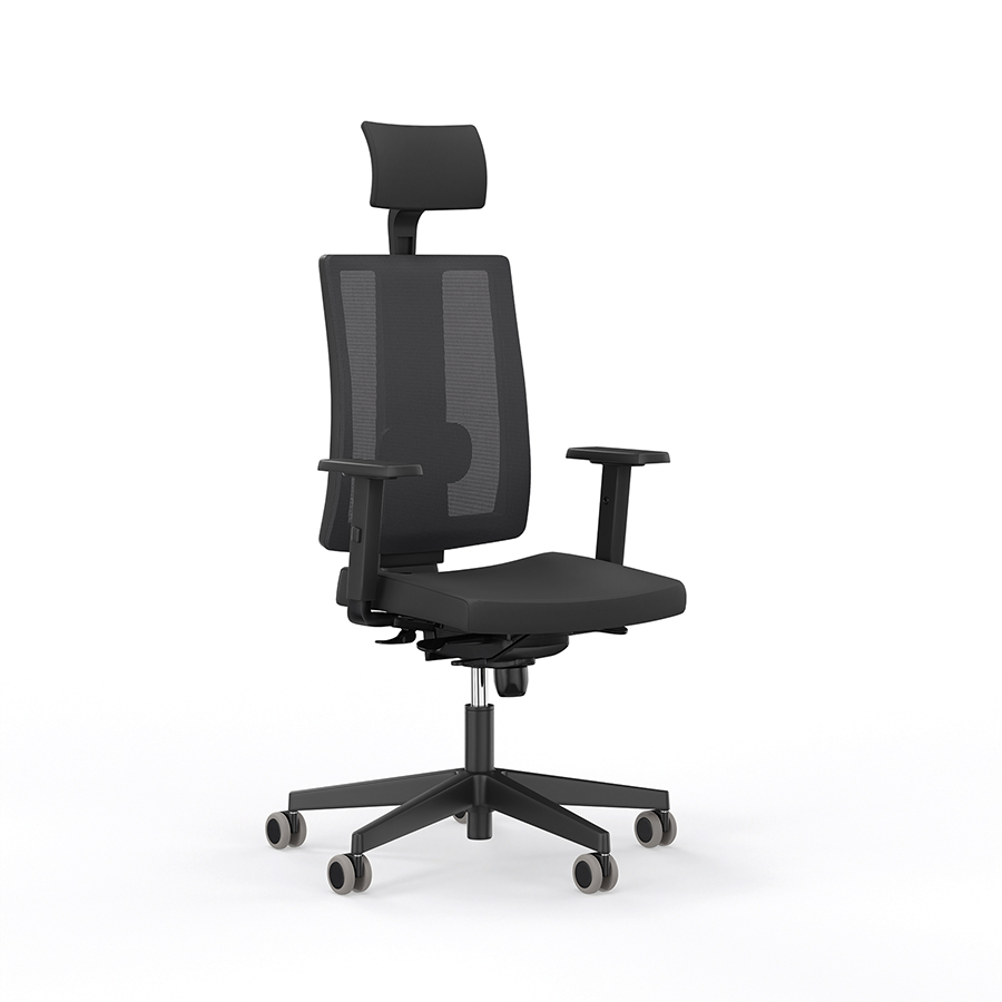 Wyposażone w oparcie z czarnej siatki, krzesło gwarantuje odpowiednią wentylację i wsparcie dla pleców. System Up&Down pozwala na regulację wysokości oparcia, a dodatkowe podparcie lędźwiowe Lu2 dba o prawidłową postawę. Regulowane podłokietniki z miękką nakładką PU zwiększają komfort użytkowania.
