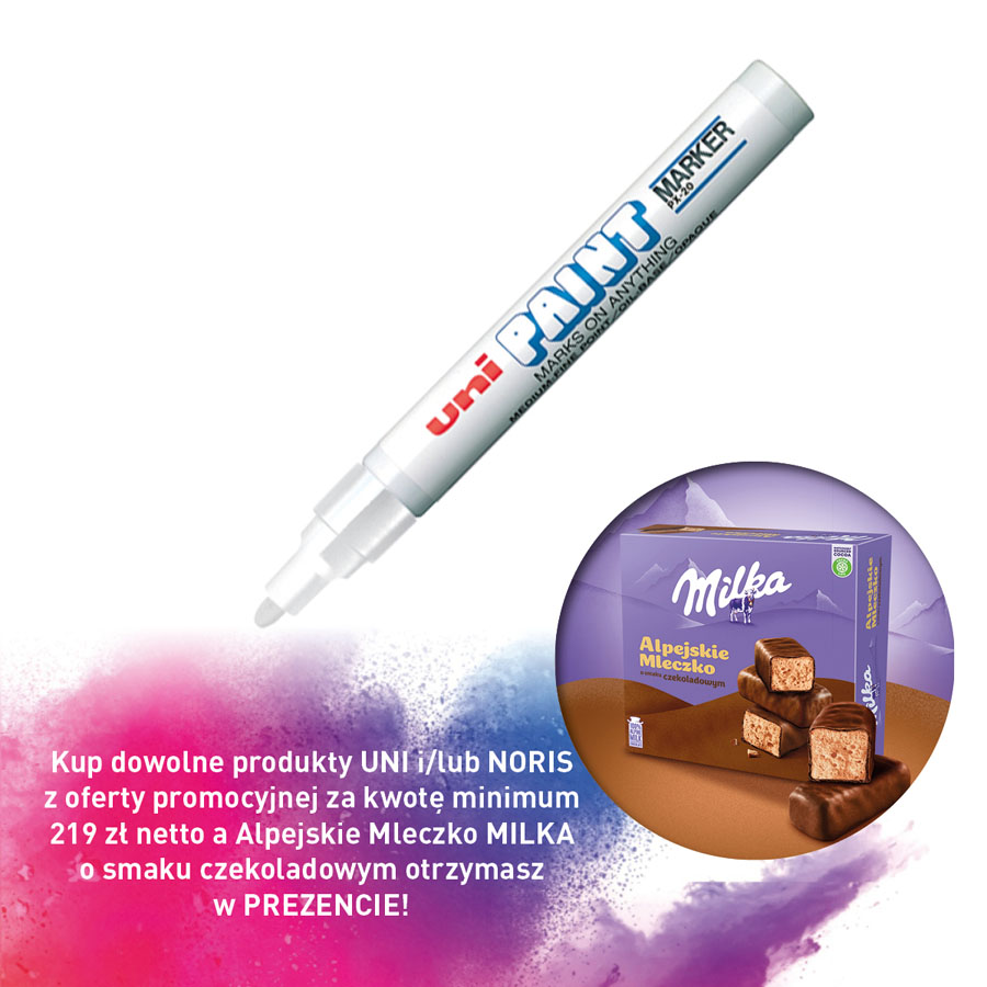 jm.: Kup dowolne produkty UNI i/lub NORIS z oferty promocyjnej za kwotę minimum 219 zł netto a Alpejskie Mleczko MILKA o smaku czekoladowym otrzymasz w PREZENCIE!