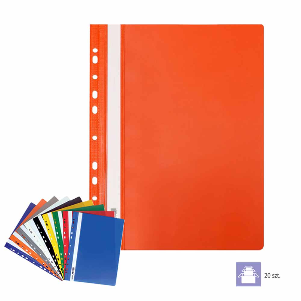 Boczna perforacja pozwala na łatwe wpięcie skoroszytu do segregatora z dowolnym mechanizmem, co zwiększa możliwości organizacji i archiwizacji dokumentów. Wewnętrzna blaszka i wąs o długości 16,5 cm umożliwiają bezpieczne przechowywanie dokumentów o grubości do 20 mm.