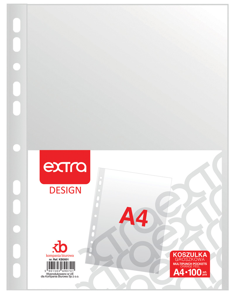 - z lewej strony koszulki znajduje się wzmocniona perforacja, która umożliwia wpięcie koszulki do każdego rodzaju segregatora