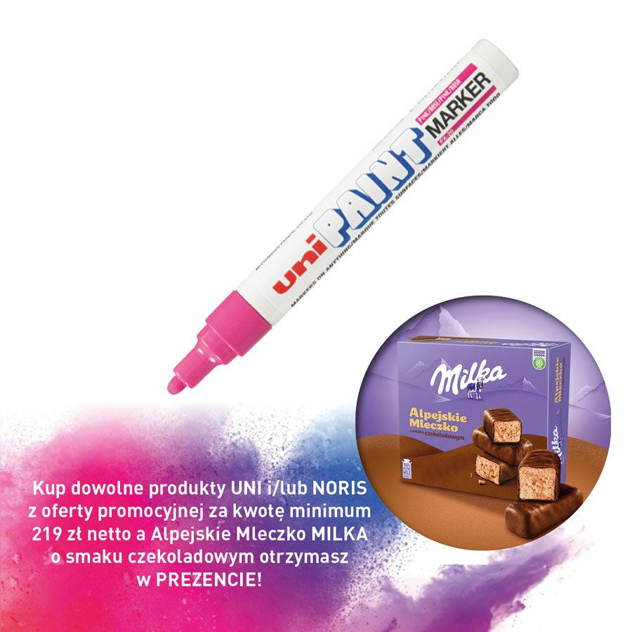 jm.: Kup dowolne produkty UNI i/lub NORIS z oferty promocyjnej za kwotę minimum 219 zł netto a Alpejskie Mleczko MILKA o smaku czekoladowym otrzymasz w PREZENCIE!