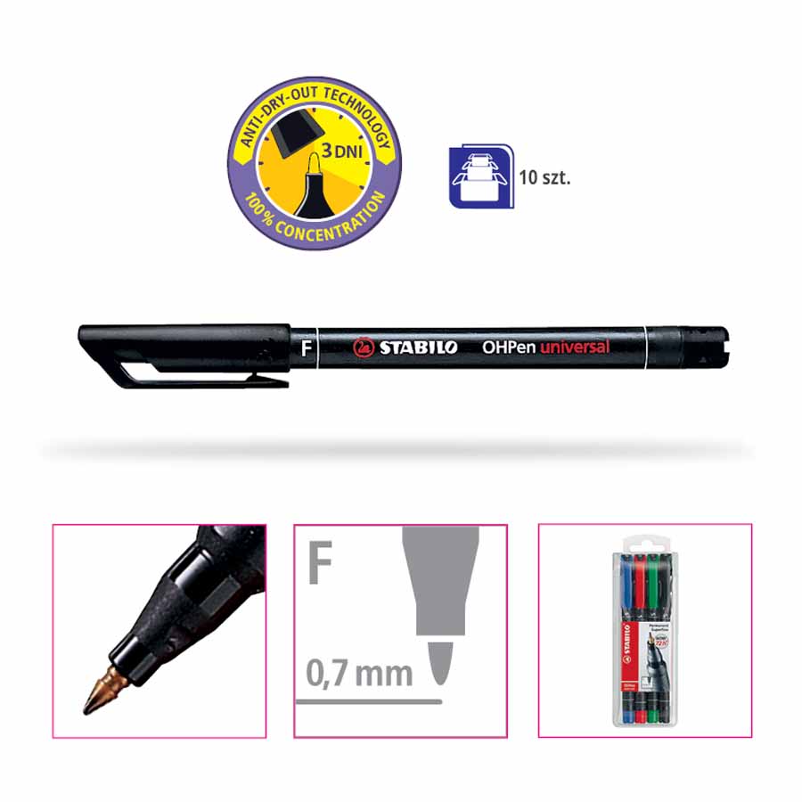 Tusz w foliopisie Rystor S schnie szybko, nie rozmazuje się, jest wodoodporny i odporny na działanie promieni słonecznych. Dzięki temu oznaczenia są trwałe i wyraźne, a intensywność barw pozostaje niezmieniona.